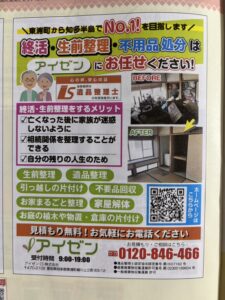 愛知県全域、知多半島、三河地域を中心に、遺品整理、生前整理を行っております『アイゼン』です。